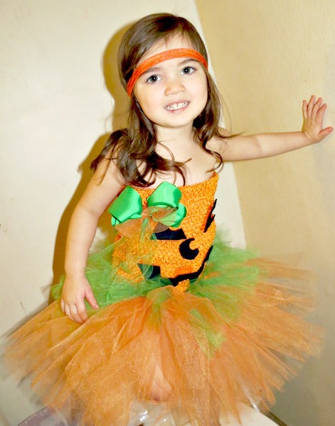 My [almost 3 years old] daughter decided she wanted to be a pumpkin this year. I expected her to want to be a princess or dragon of some sort - so her request was a shock to me. :] I love that she's able to speak her mind & she LOVES her new costume!