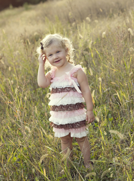 This is 2 yr old Farrah wearing the Neopolitan Lace Romper.