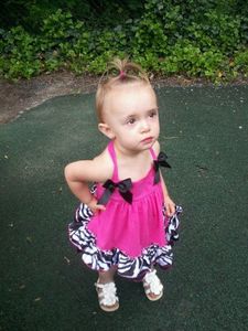 • This is Morgan. She is wearing a crochet headband and flower bow, crochet top and zebra skirt all from GCH! Morgan was 6months old in this picture.What you can't see, is under this adorable outfit is a colostomy bag. Despite everything, she is styling!
