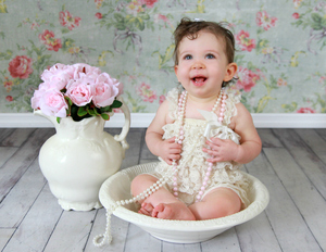• AudriaAnne's first birthday photoshoot wearing a gorgeous romper from GCH. The Vivid white just makes her eyes pop!!