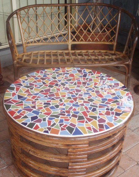 An old table I found in a council clean up.. all tile shapes were smashed with a hammer
