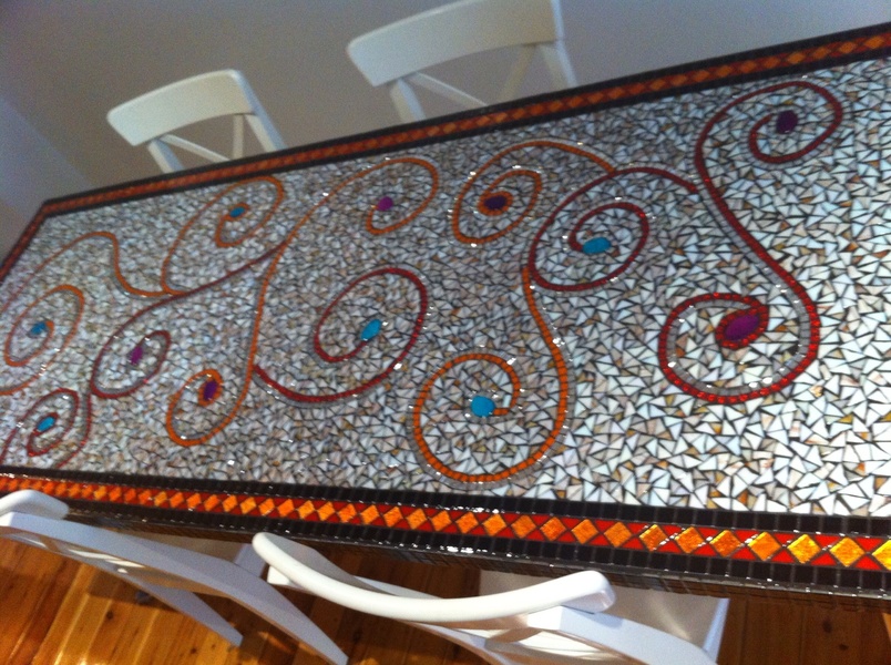 This table was made with love for my daughter. Made from glass and ceramics.made by Karen Roberts