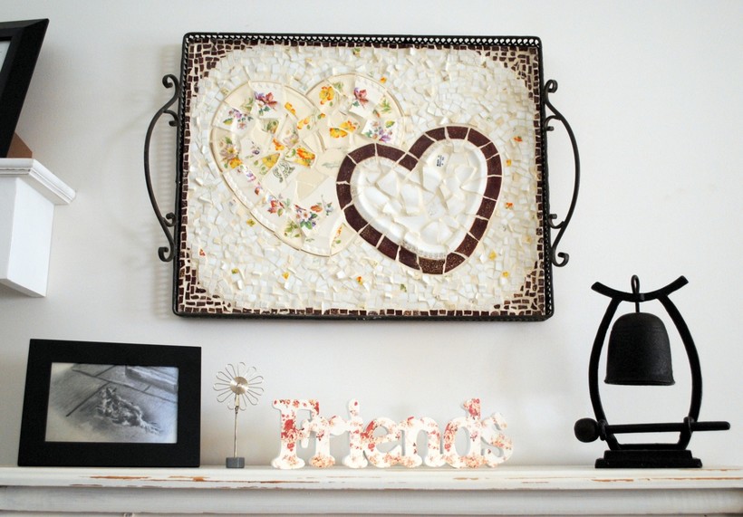 'Hearts' Framed in an old tray I fell in love with this piece was created using dinner plates purchased from the tip recycling centre.