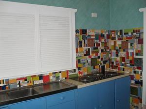 New kitchen splashback. We are about to retire and make our beachhouse our permanent home. Errol likes my mosaic projects but being rather conservative prefers them outside. Imagine my delight when he suggested I make something special for our new home.