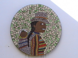 South America, Machu Picchu woman and baby. This is 1 in a series of 'Women of the World'. Made with tiles.