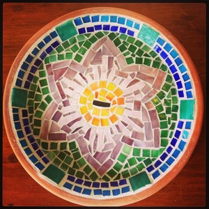 Glass tile lotus flower mosaic platter I made for my Nana for Mother's Day this year