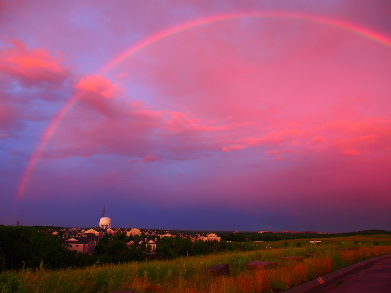 Rainbow at sunset in Quincy, MA overlooking Archstone Quarry Hills