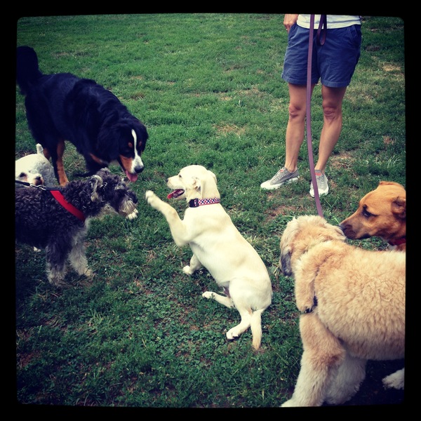My dog George, playing at one of the many parks in the area where there are always tons of friendly people and dogs to meet!