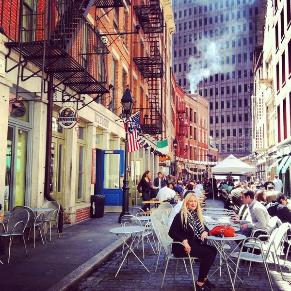 This photo is of my mother enjoying a coffee on stone street, just blocks away from my apartment. I love showing family and friends around my neighborhood like stone street which has turned one of the oldest streets in New York into a hip place to go out