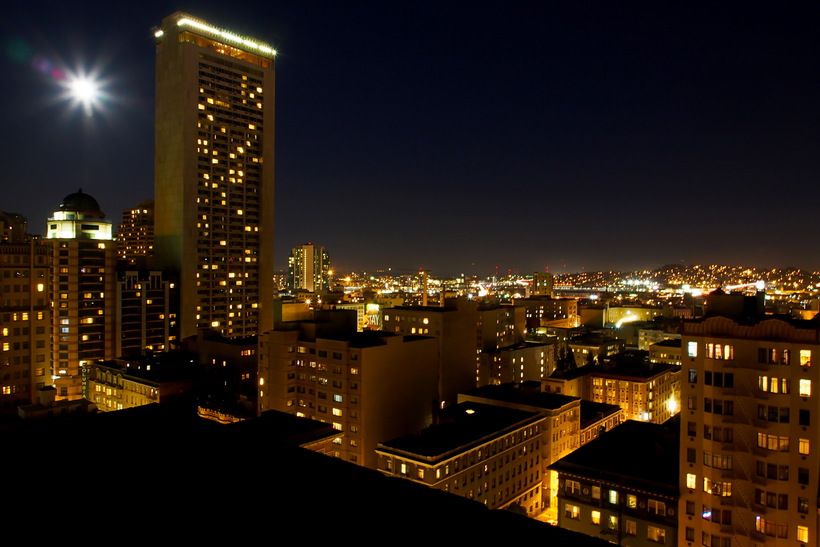 The night of San Francisco with moonburst.