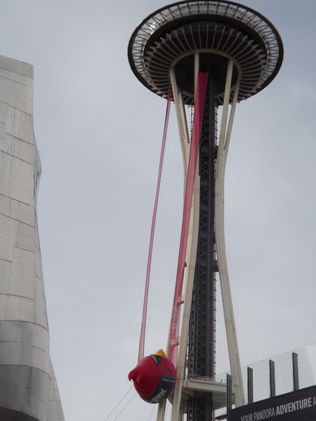 SEnding the Red angery Bird too space from Seattle Space needle