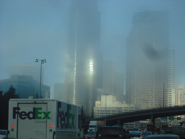 Foggy morning heading into Seattle, WA