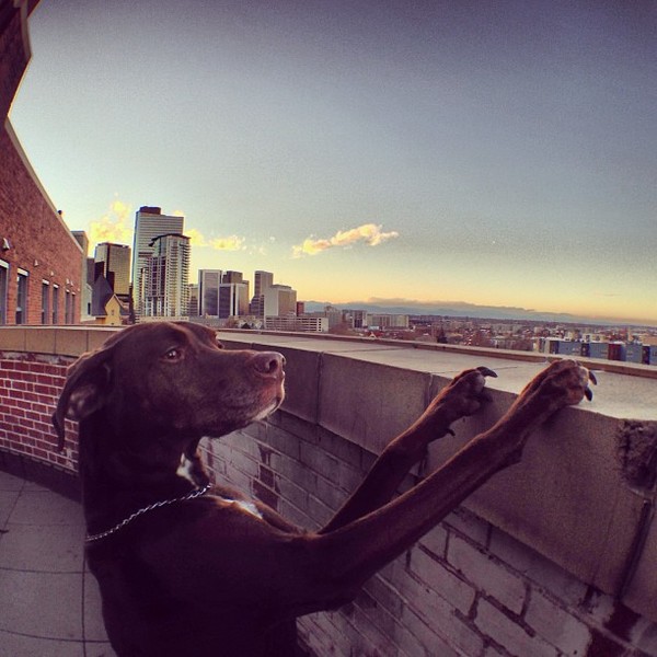 My dog bogey and I love our neighborhood because there is so much to do and see. This photo is of my dog bogey planning our next outing in uptown. Most likely a walk just accross the street to our neighborhood park to play fetch.