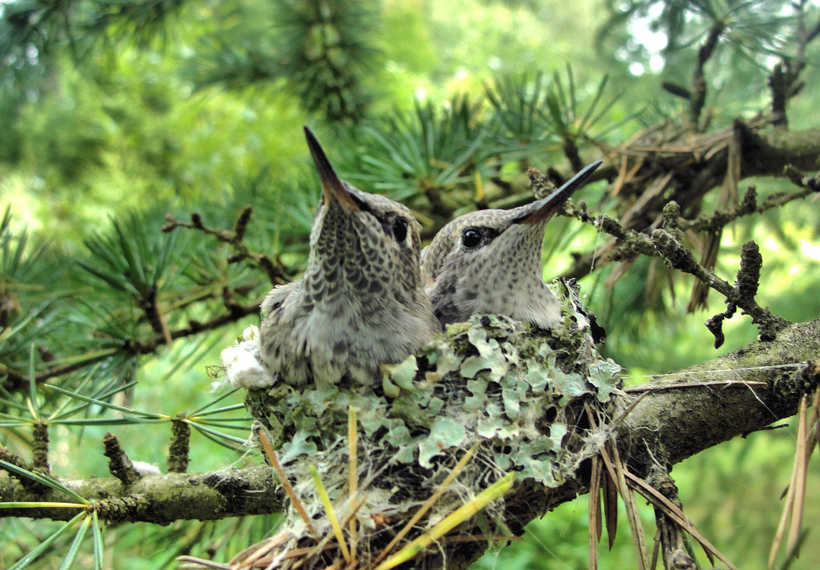 Baby Anna's Hummingbirds were born next to a nearby pond.