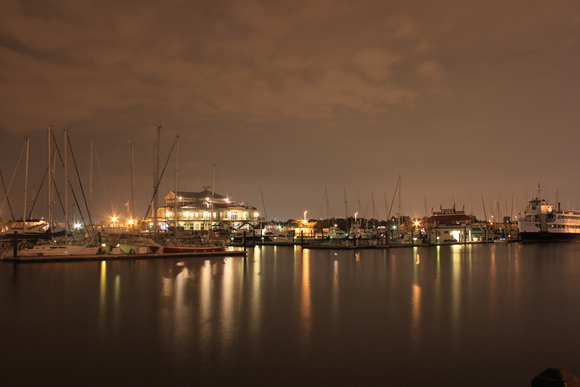 Night view of Morris Canal marina from Portside Towers