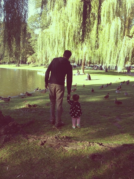 This is where my heart is. My Husband and baby chasing ducks at the Public Gardens.