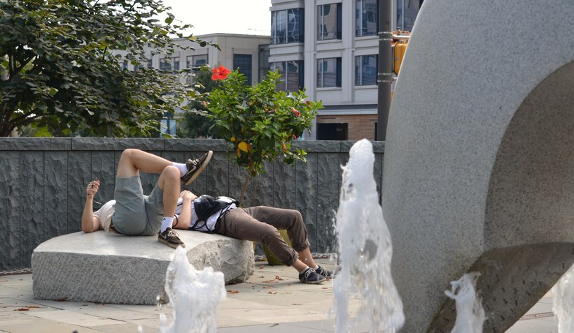 Boys Relaxing In Neighborhood Park