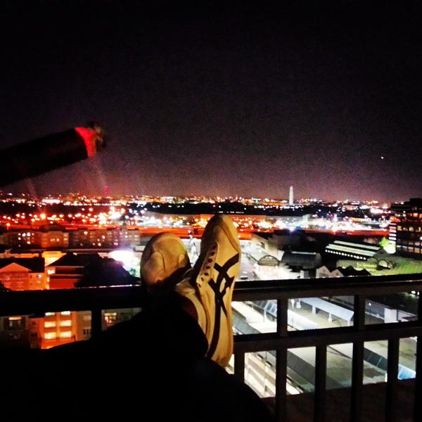 Superhero rooftop overwatch of the city (DC)...making sure all is well.