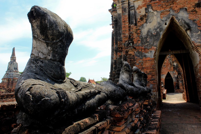 วัดไชยวัฒนาราม ยังคงหลงเหลือซากปรังหักพังโดยเฉพาะพระพุทธรูปที่เกิดการสู้รบของกรุงศรีอยุธยา ให้ได้ลูกหลานไว้ดูและสำนึกถึงการเสียสละของบรรพบุรุษ อาจไม่สวยเท่าเดิมแต่ยังคงซึ่งไว้ประวัติศาสตร์ของอยุธยา