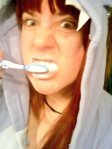 Stitch is brushing his teeth