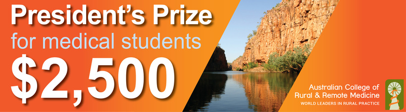 The President’s Prize is a one to two week placement with a doctor, practice or health service in a rural or remote area of Australia. The College organises the accommodation, travel, expenses and a stipend, up to the total value of $2500.